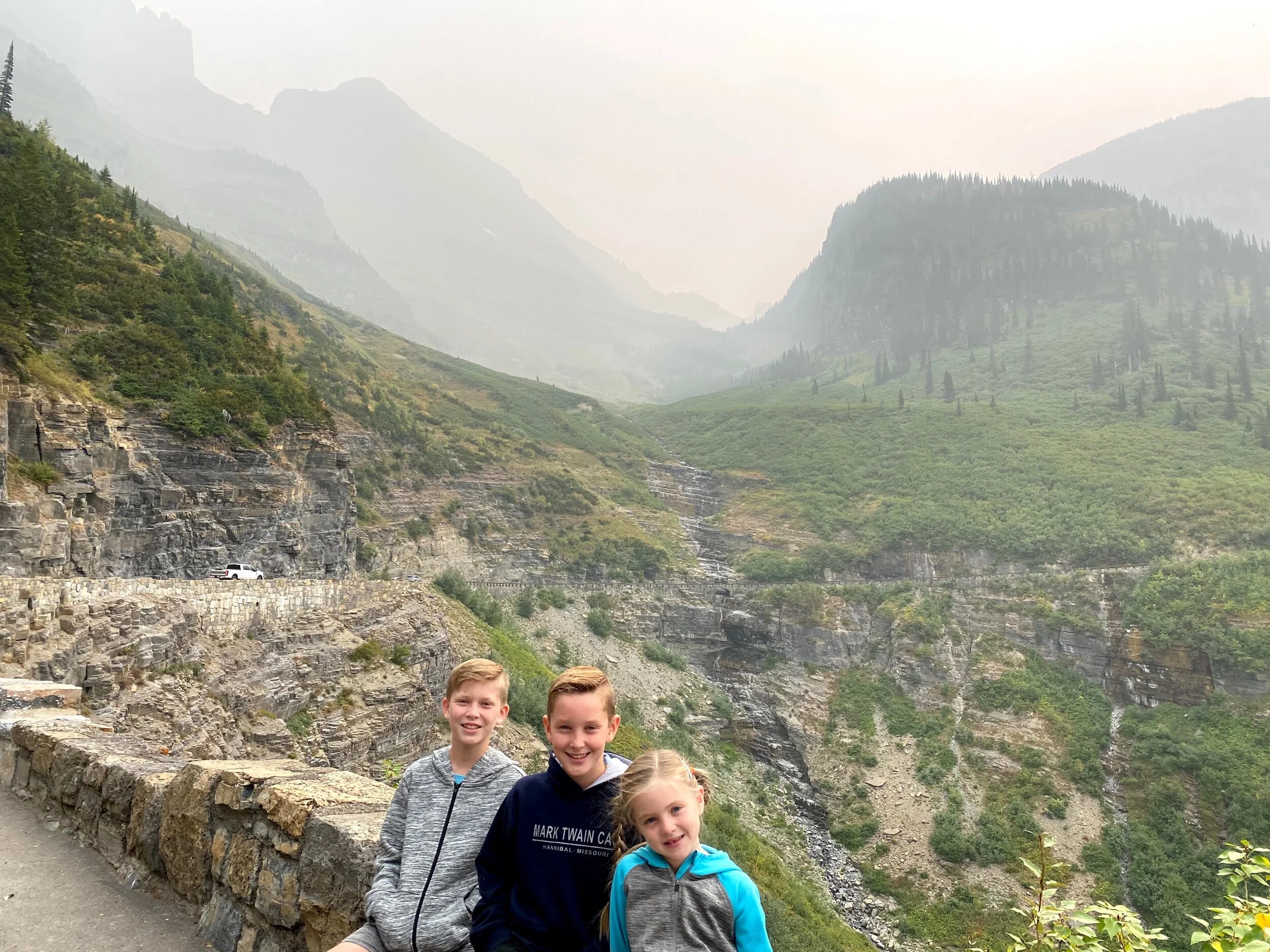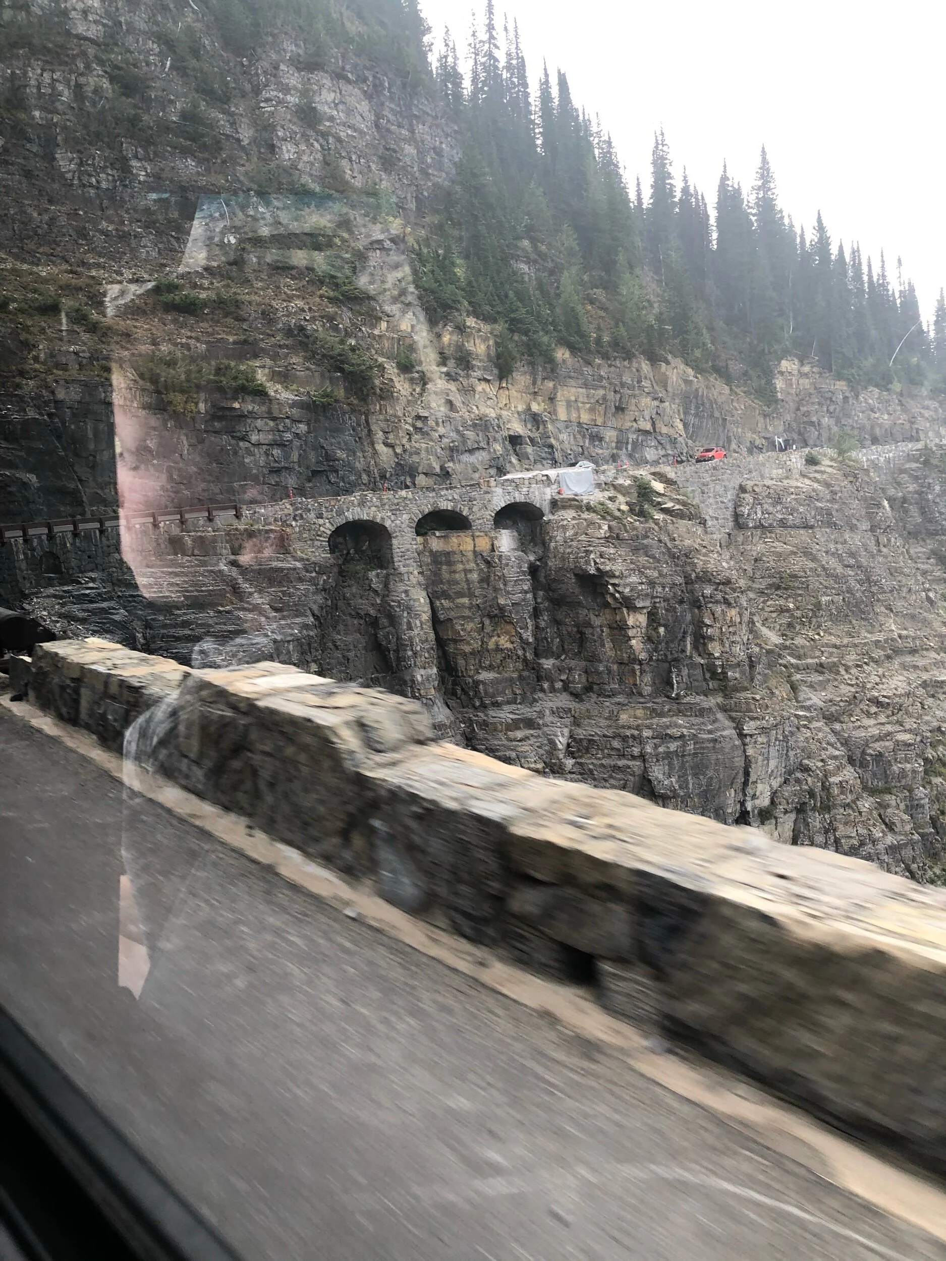 The first part of the drive was in the rainforesty area so we could see as far as the trees would allow. We also totally saw a bear. It was just chilling in the river. Our first hike is the most popular hike in glacier and it was packed. There were three parking lots completely full. After about 25 minutes we finally found a spot. The wait was worth it. All the trees were really cool and there was a river running by us.