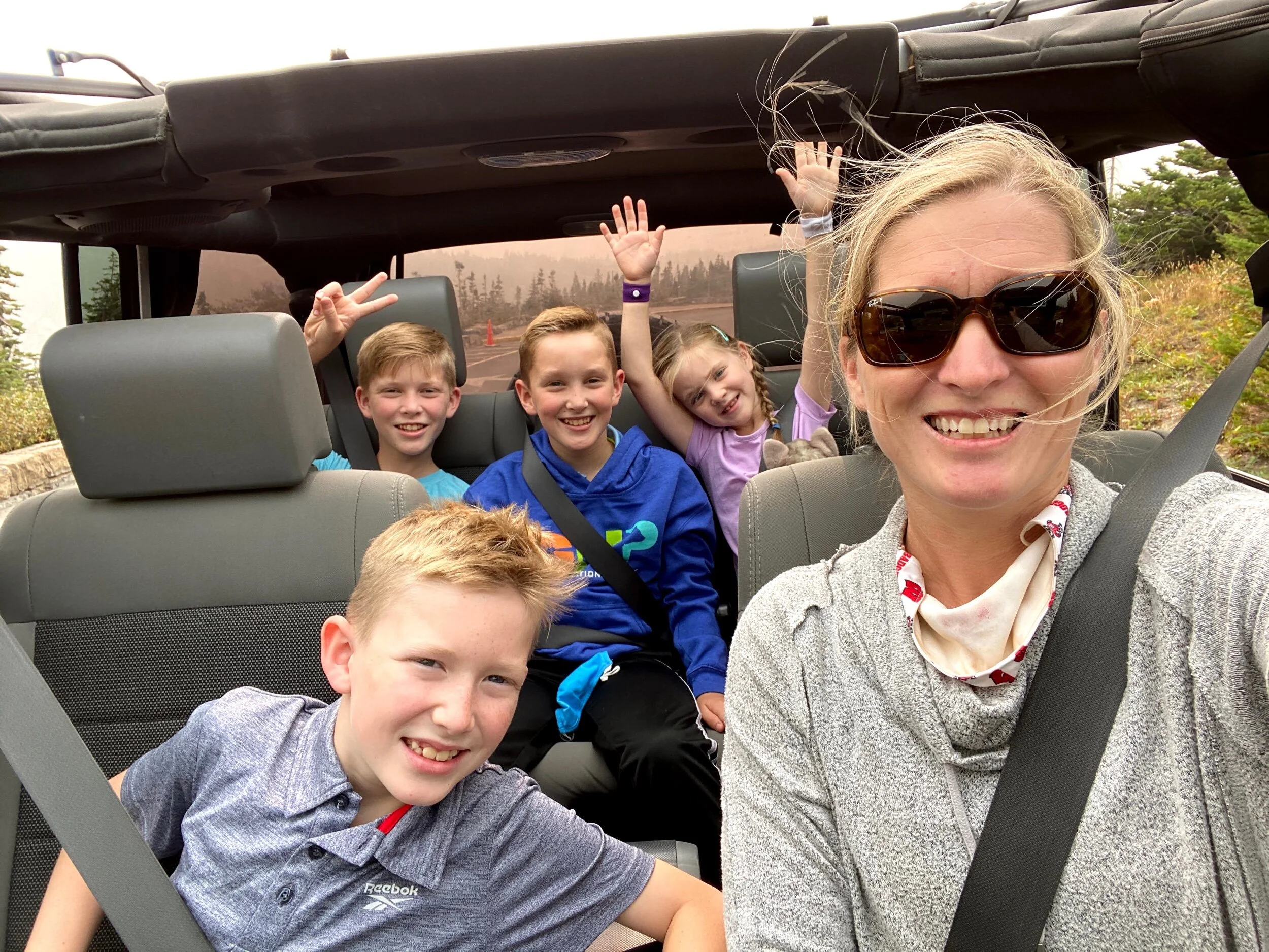 Wow! Look at that view! Such magnificent mountains! Today was maybe our first failure on this trip. The smoke was really bad and we didn’t see much. You could stare straight at the sun and nothing would happen. We rented a jeep though. It was nice to have a change of scenery and was fun to ride in.