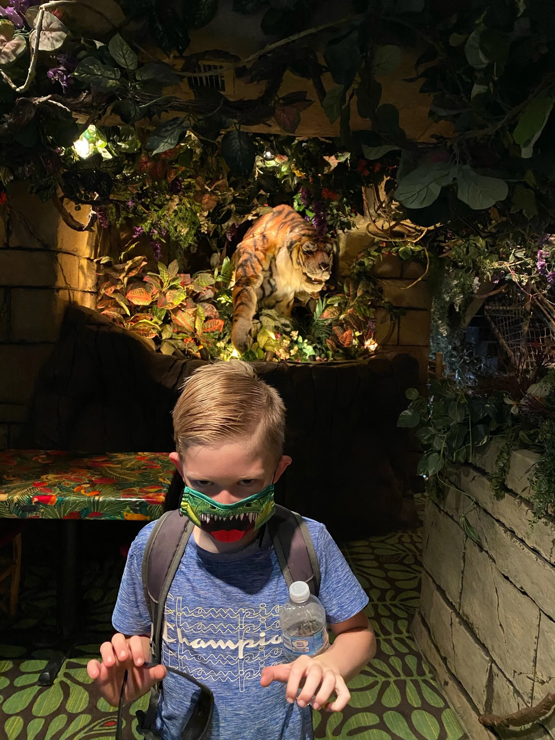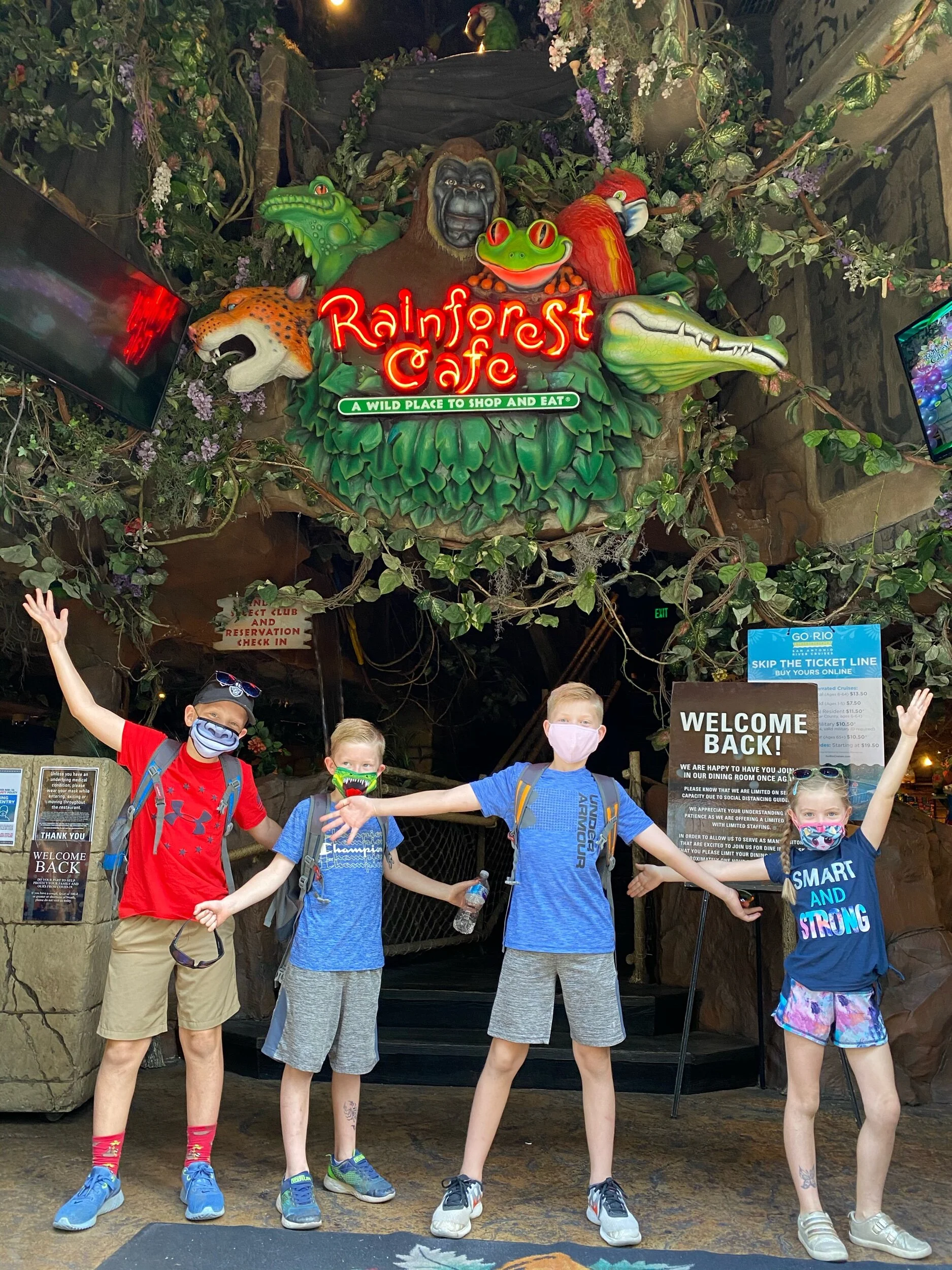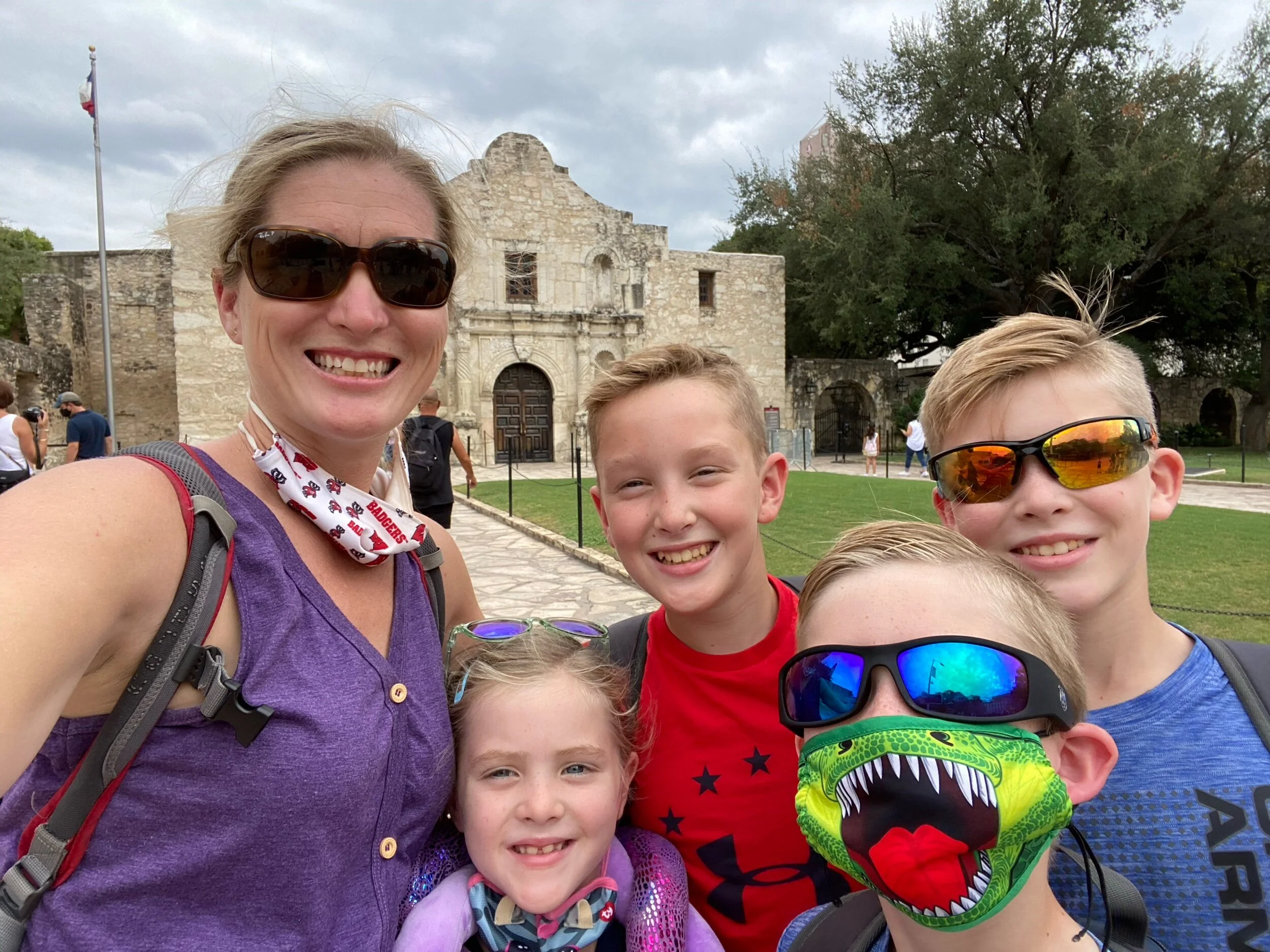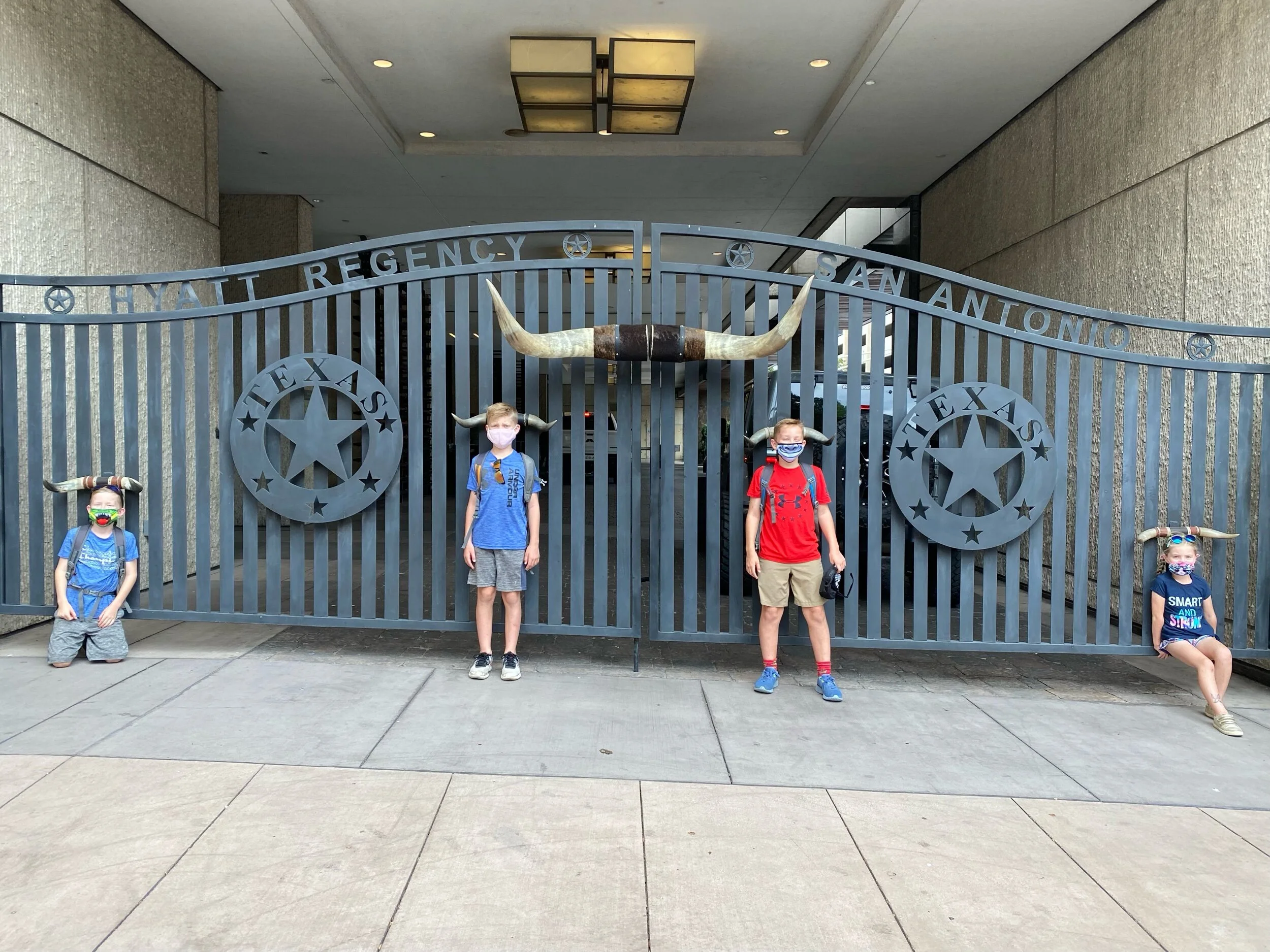 Mom was really ambitious thinking we were going to bike 25 miles total and we were all getting tired and hungry, so we ubered to downtown to eat at the greatest restaurant ever, Rainforest Cafe. We all loved it! We also had a dessert volcano. It was two scoops of ice cream topped with a scoop of whipped cream surrounded by four brownie cakes covered in fudge and caramel. It was DELICIOUS. After lunch we walked around downtown. The last mission we went to see was the Alamo. This was definitely the coolest mission. We got the audio tour that taught us a lot of cool facts. And they had historical reenacters that told us cool things too. Ben’s favorite part was meeting the Alamo’s cat. It was pretty cute. Going inside was really cool too. You can just imagine the Americans fighting off the Mexican Army. It was really amazing.