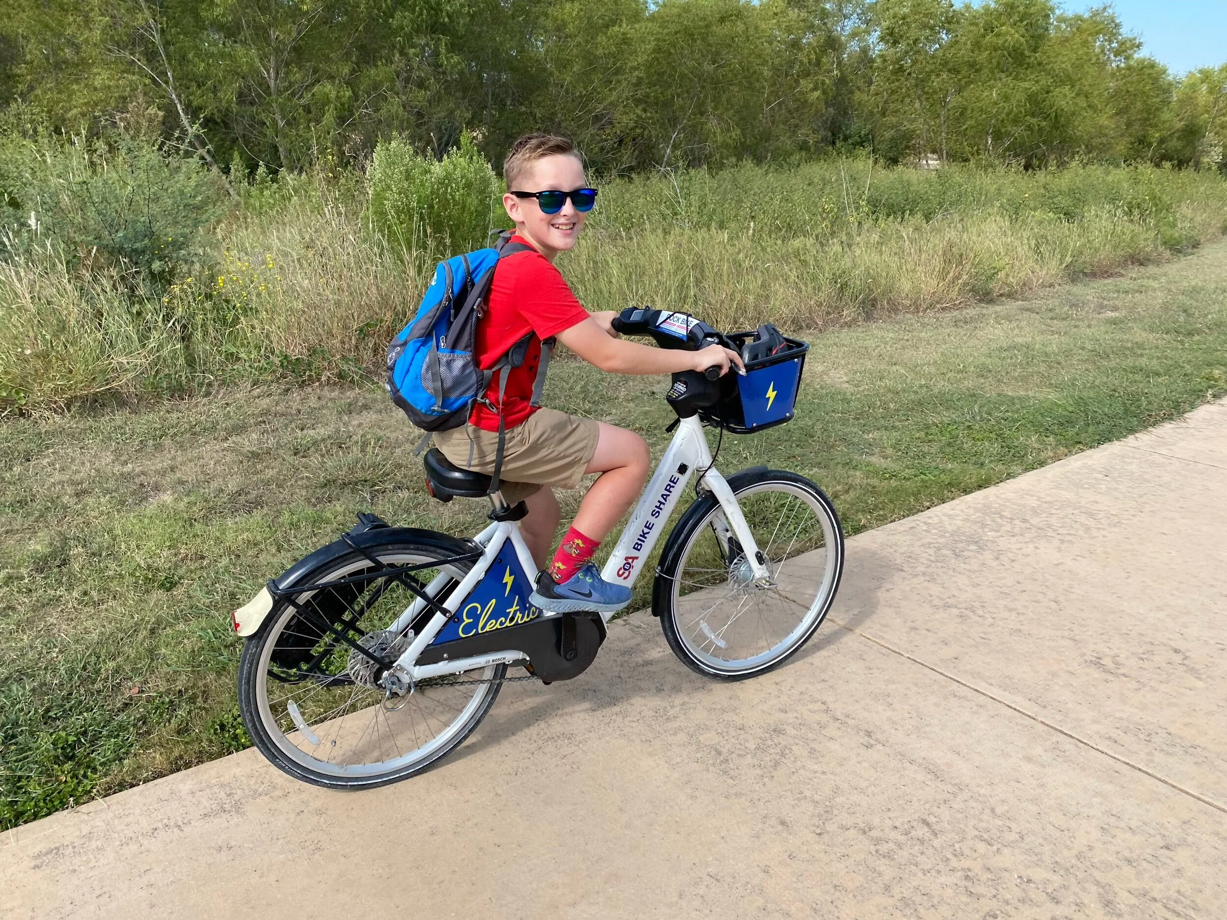 Today we got up very early to go tour San Antonio on our bikes. The first stop were the missions. The Spanish explored the area and stayed at these missions. 5 out of 6 missions survived and we biked to the first 3, Espada, San Jose, and San Juan. My favorite was San Jose because it had a bright white church that was really cool. I also rented an electric bike for fun.