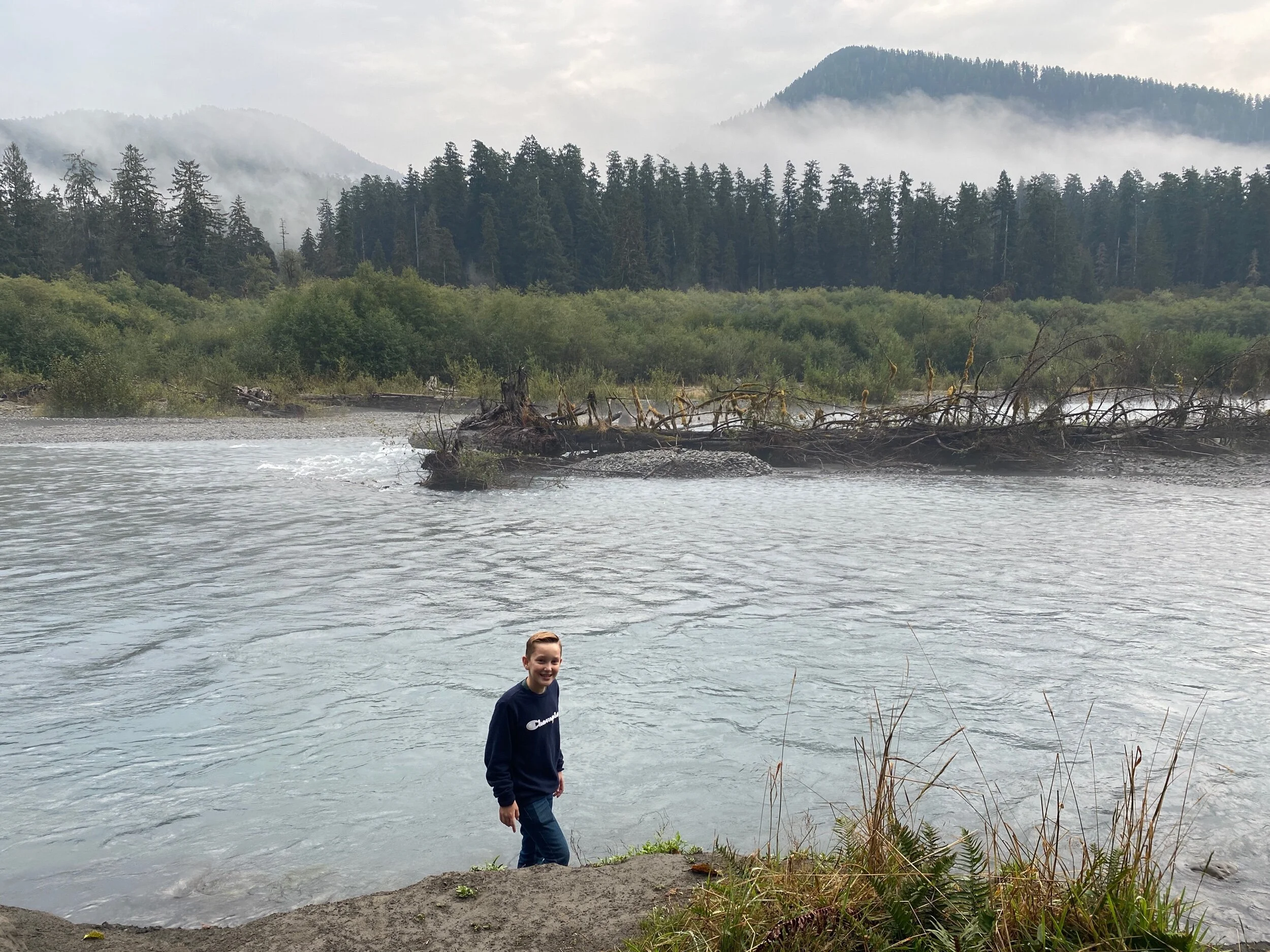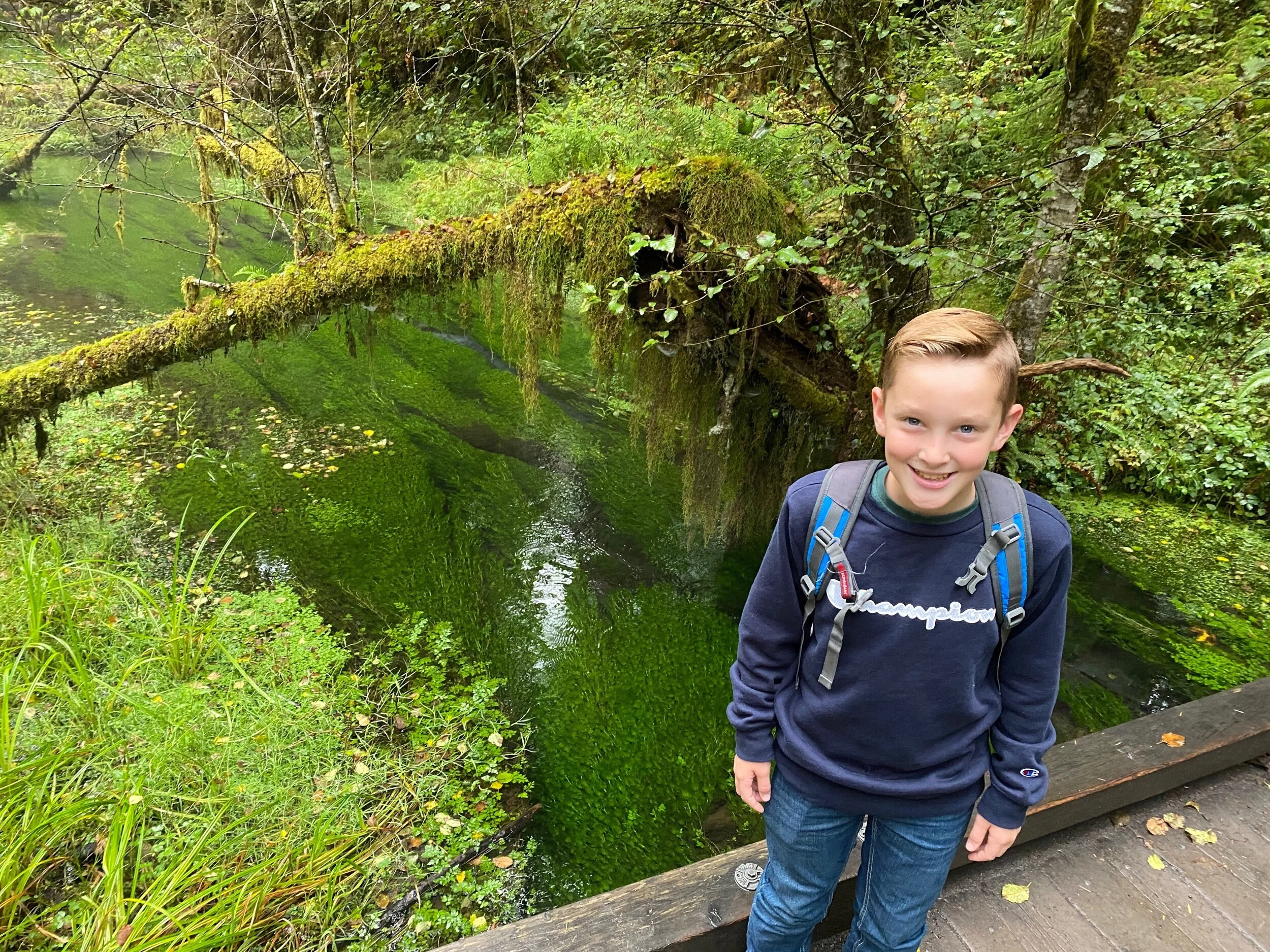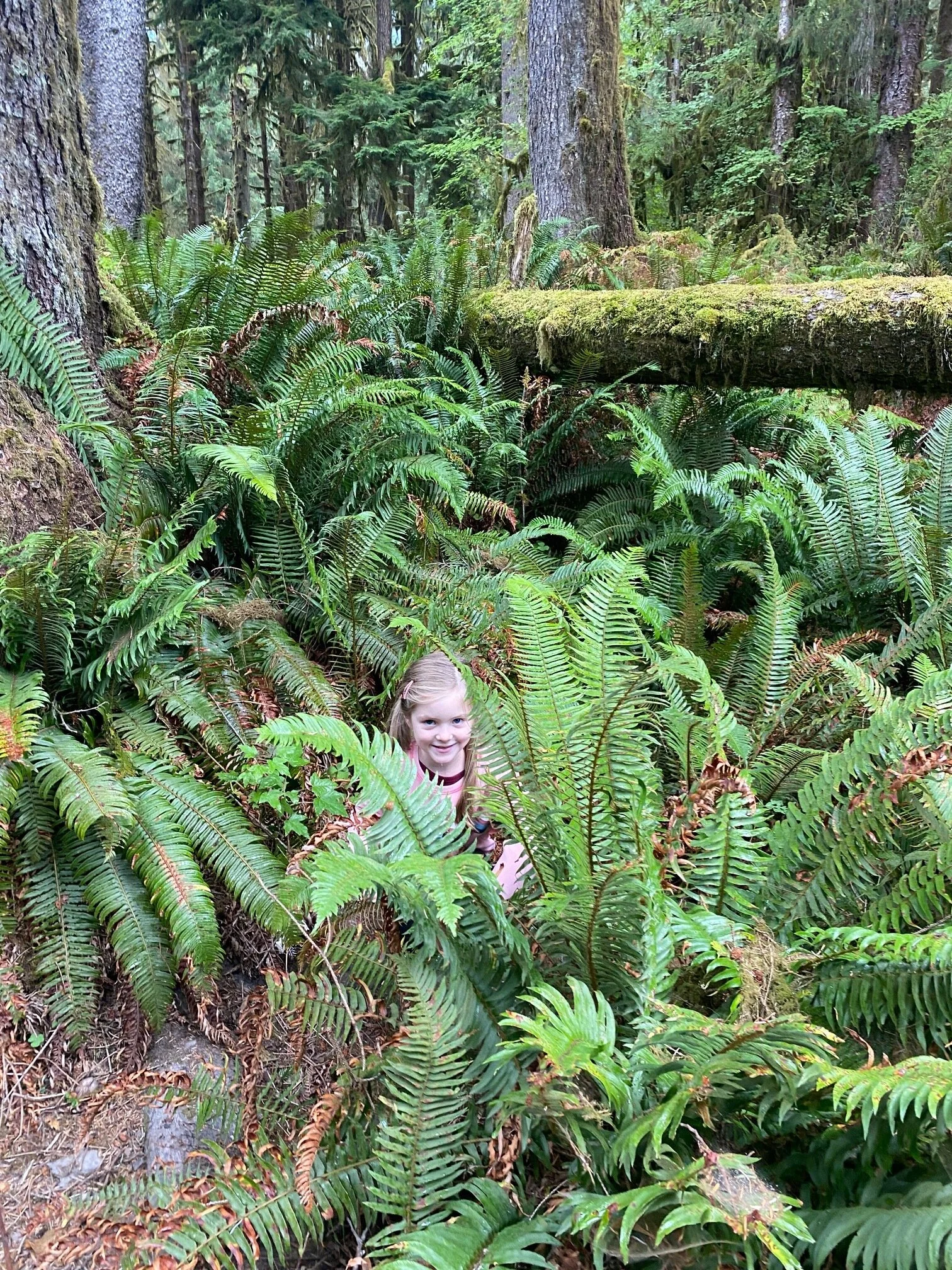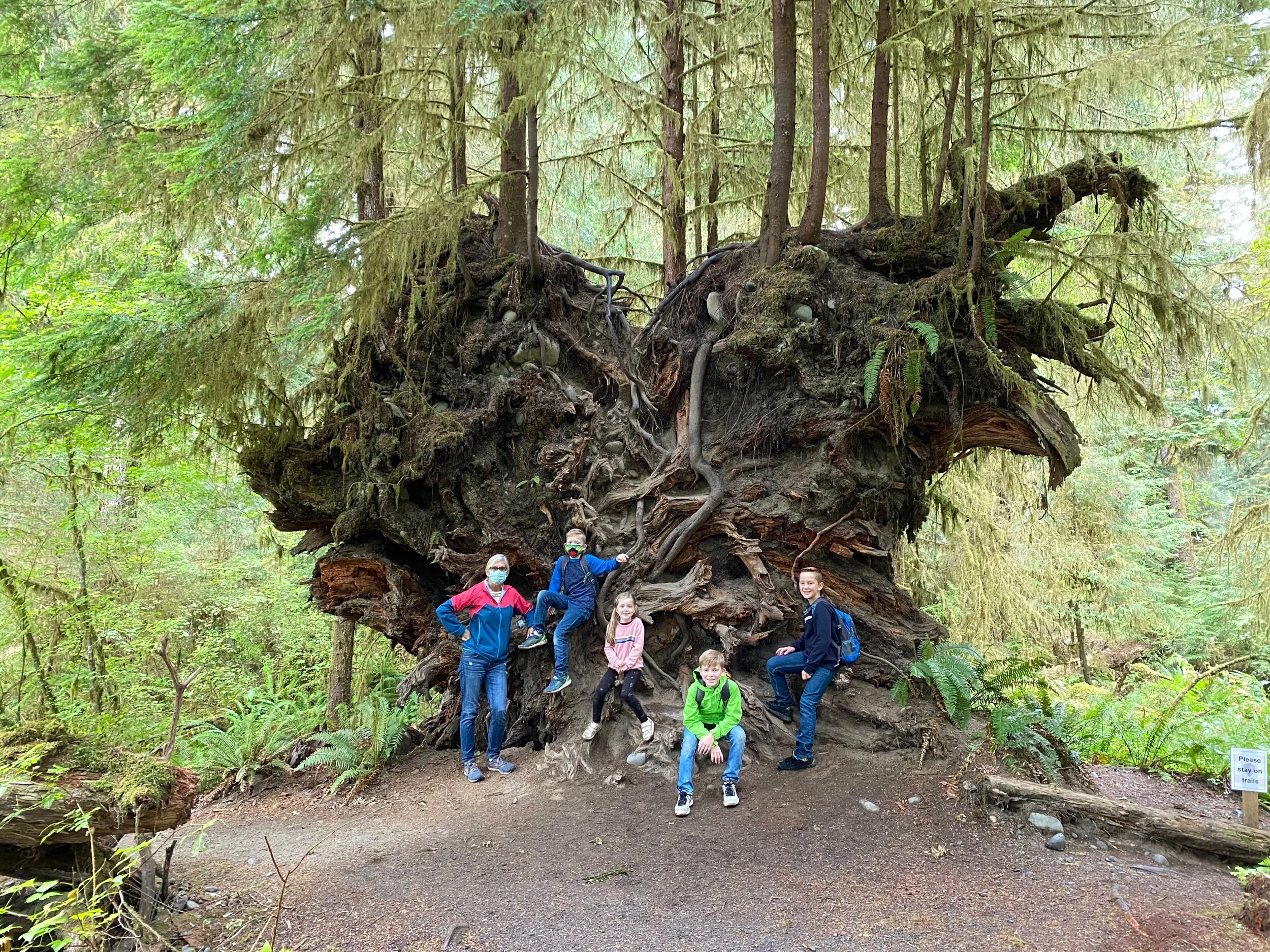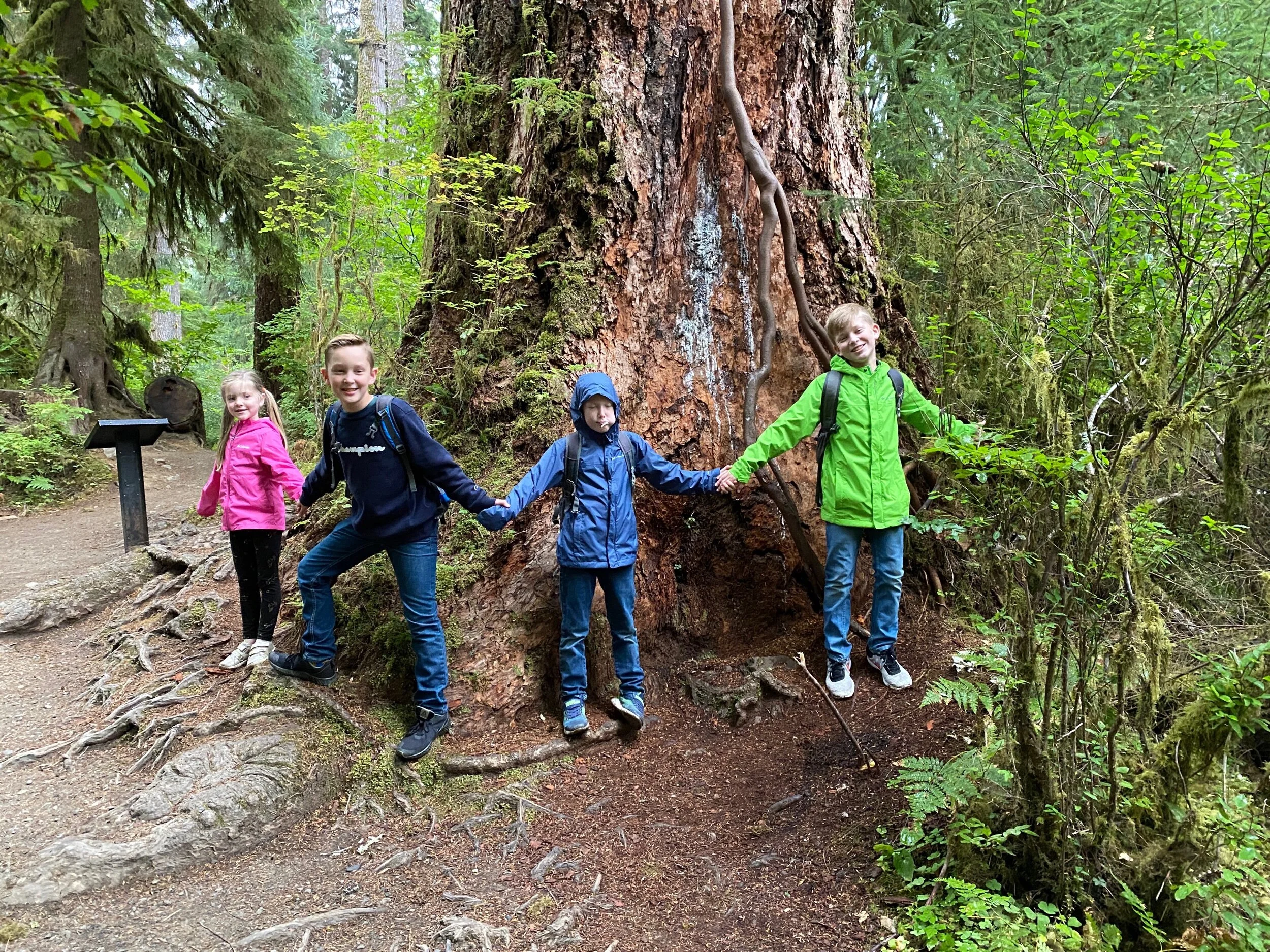 Today we visited the rainforest of Washington. We drove about 45 minutes and made it to our hikes. The drive was very unlike the other part of Olympic. The treees were so tall and mossy. The first hike was along this mountain stream. A lot of the trees had exposed roots and in some we could all fit.