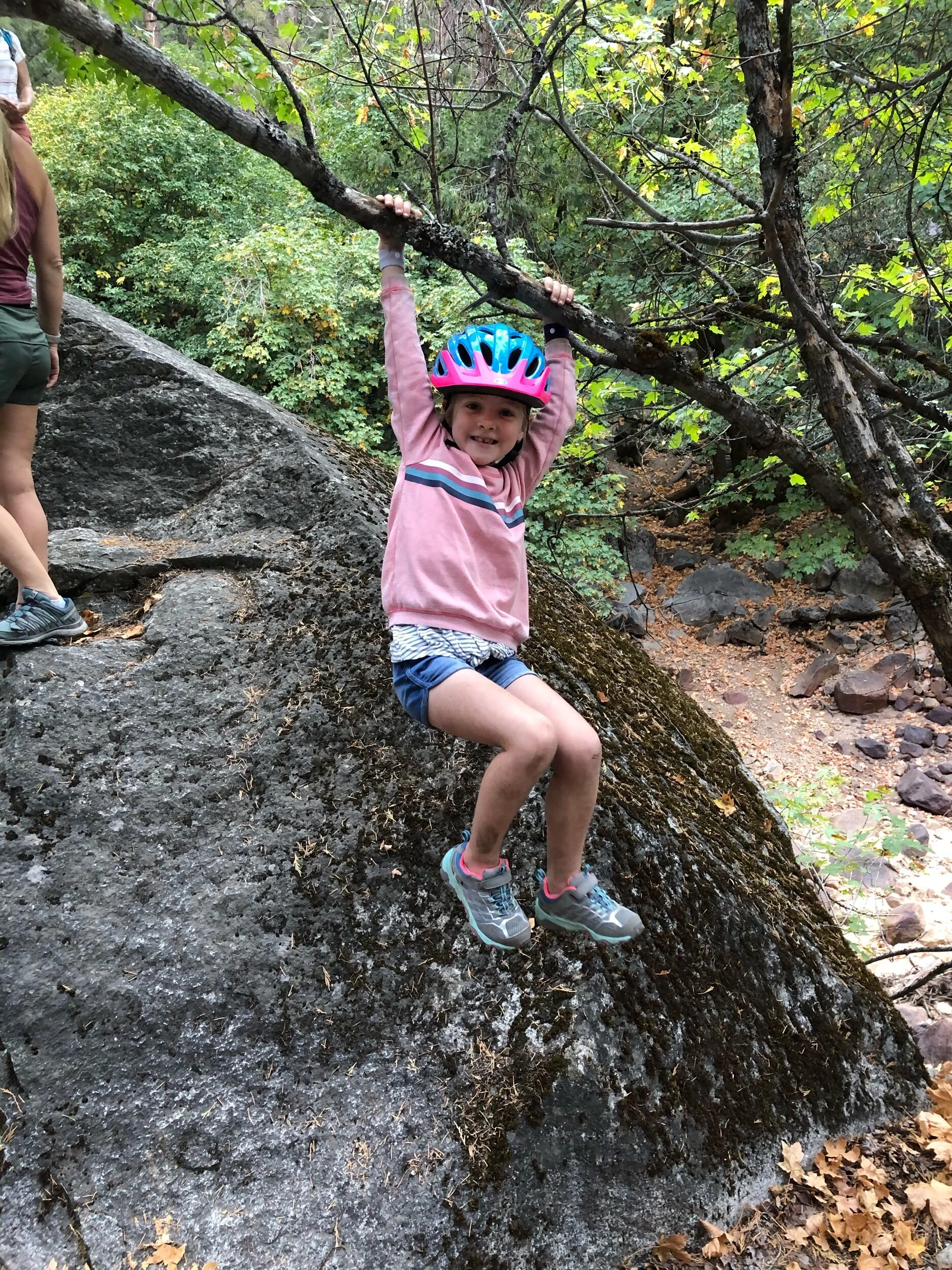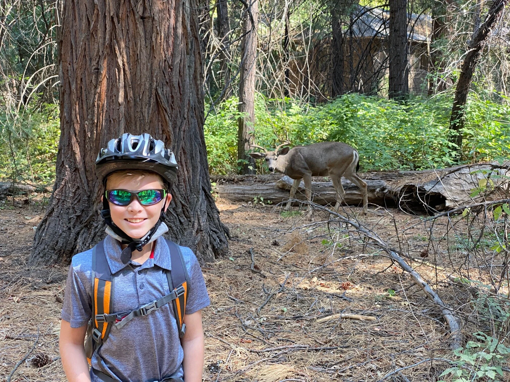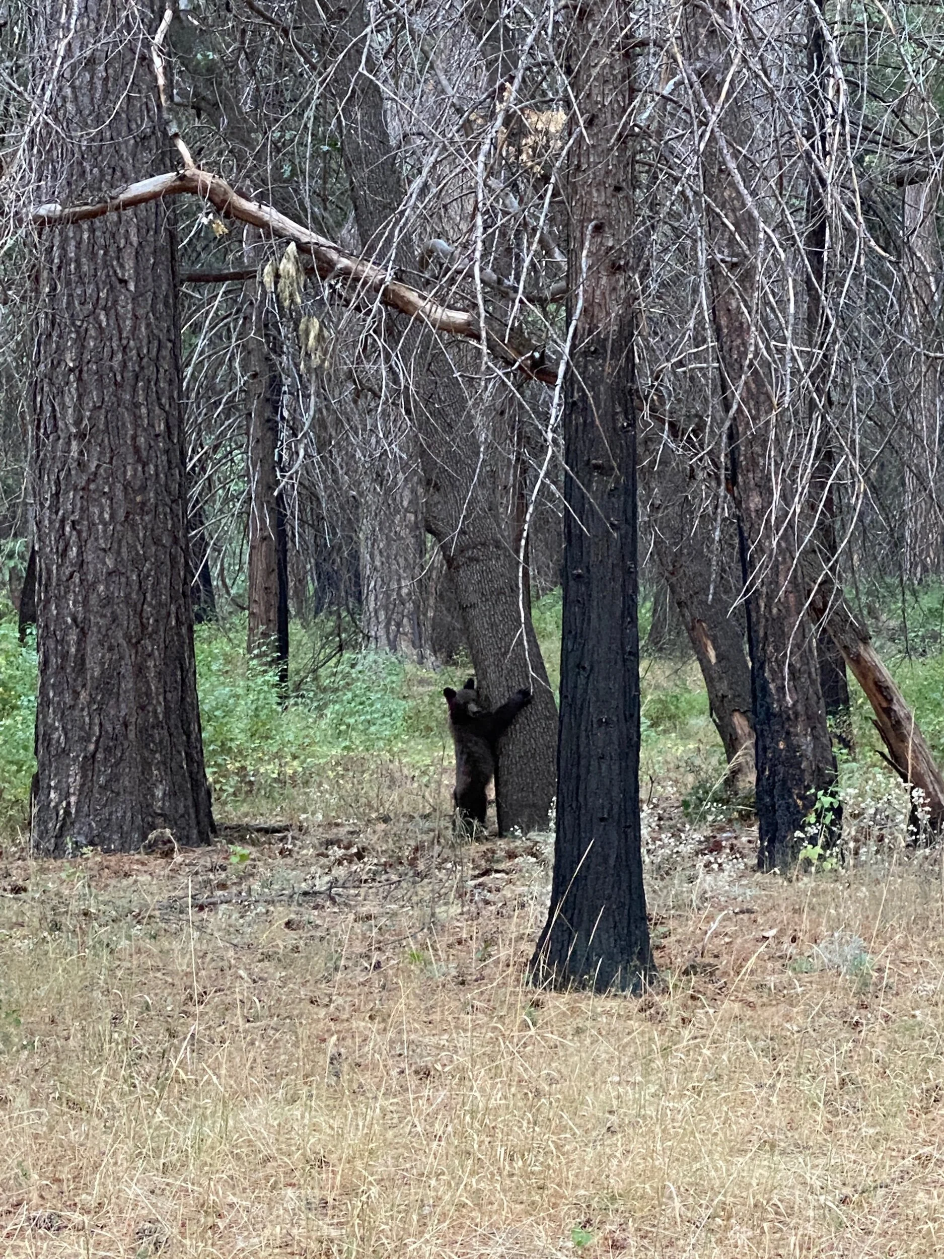 We unloaded the bikes and got going. This was a really entertaining bike ride. We enjoyed climbing on rocks and having no one else there. We really were in Yosemite by ourselves. Their signs suck though! We got on the wrong trail and it took us a while to realize that it was not for bikes. We also saw tons of wildlife. We spotted lots of deer, some very aggressive crows at lunch, and even a few bears. That’s right, bears! We saw a mama with three cubs, and one in a tree eating acorns. They were so cute! There was a ranger there keeping everyone safe and he said he saw two more the other direction. So overall there were 6 bears within 500ft of us.