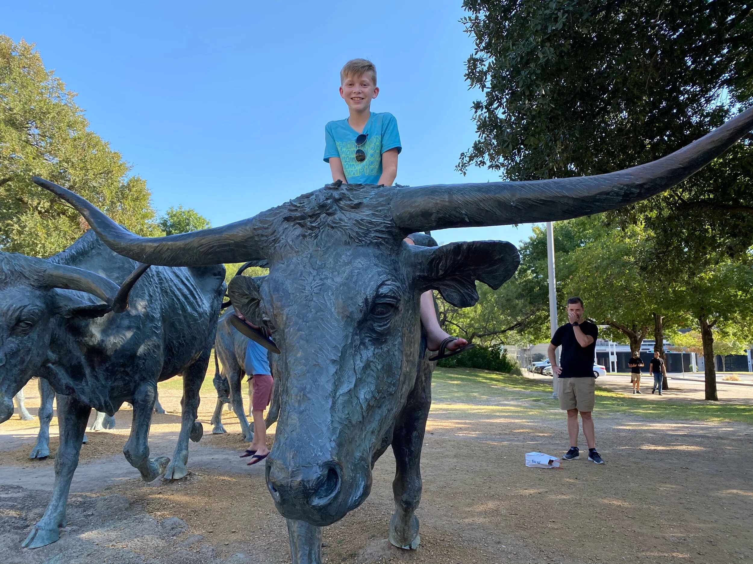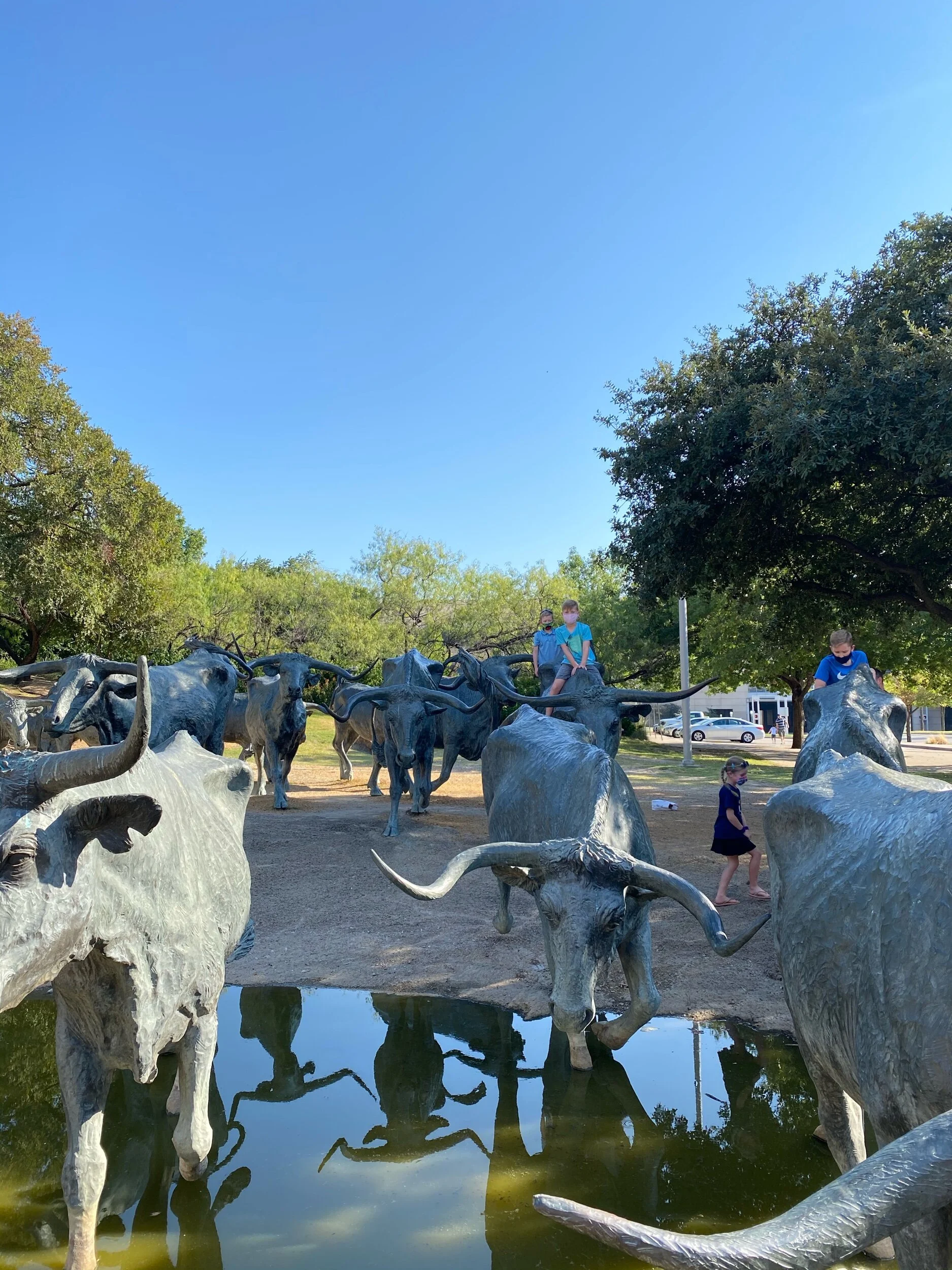 We needed something else to do so we went to a cool longhorn sculpture. There were lots of them and, of course, we climbed on them. Then we went to dinner at a tex-mex place which was delicious.