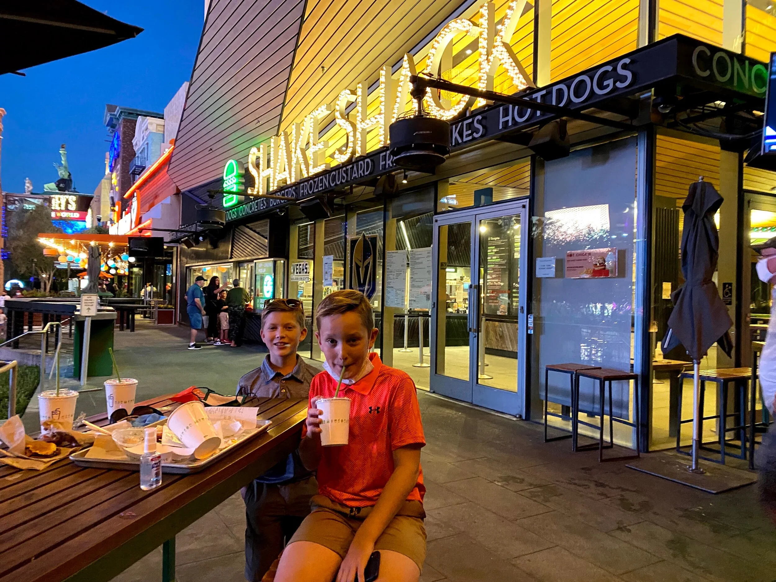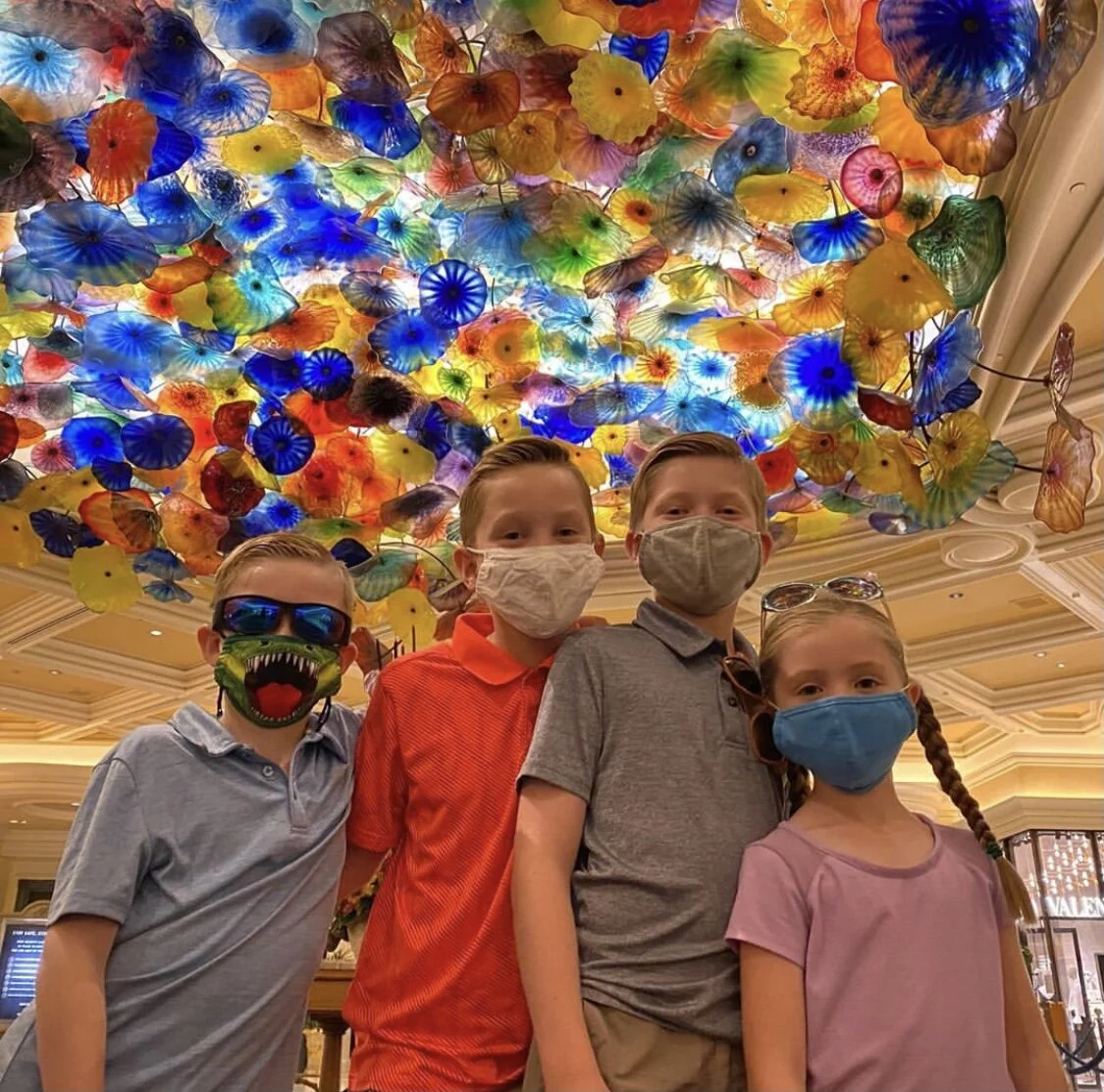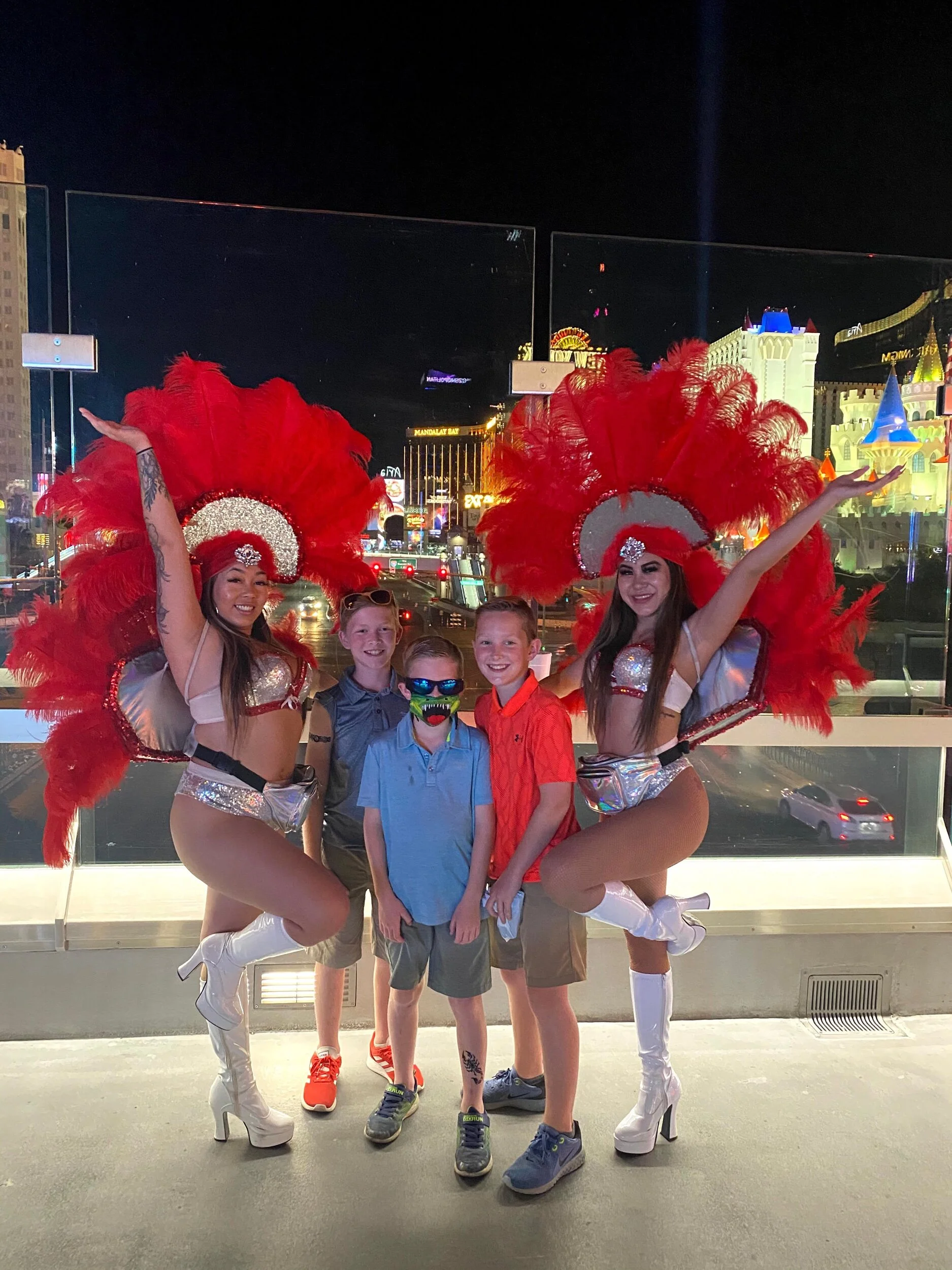 After dinner at the Shake Shack, we headed out on the strip. We were really living life n the edge. We got pictures with showgirls (grandma’s idea) and temporary tattoos (grandpa’s idea). I got a panda tattoo, Will got a cool design, Ben got a scorpion, Evie got a butterfly, and Mom got a badger. Sadly Mom stopped the crazy train at Jello-shots.